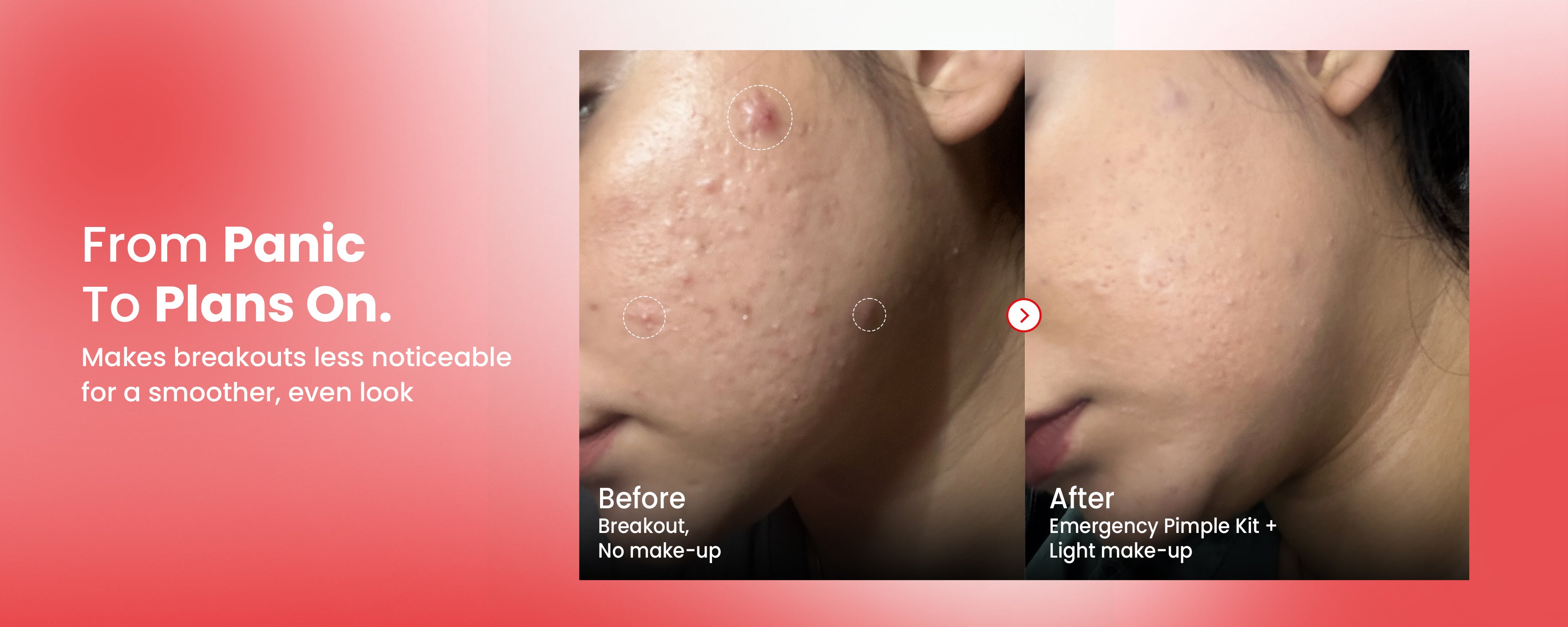 So we got you the ultimate solution - Emergency Acne Kit - that will help to heal your acne, soothe the redness and help you to hide it under your make up. Very thoughtfully designed so you can still look your best, no matter the Acne.