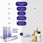 It effortlessly melts away waterproof and smudge-proof makeup, sunscreen, and daily dirt, then washes away clean with water. It cleanses deeply to help keep pores clear, without stripping the skin. The formula is crafted without alcohol, or soap, making it safe for sensitive skin and non-irritating to the eyes. This new science of cleansing helps delivering a high-strength cleanse with a gentle touch suitable for everyday use.