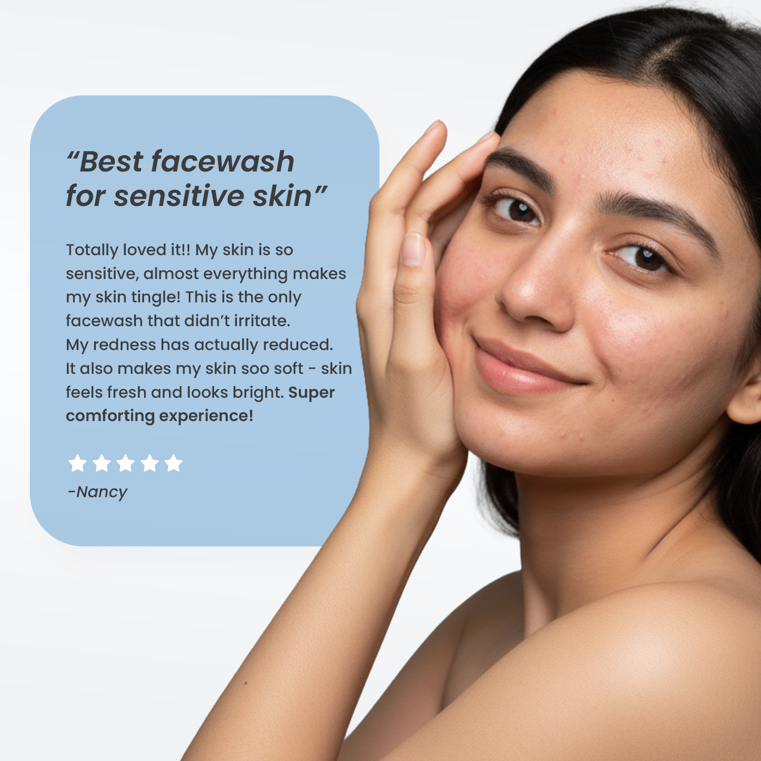 If your skin feels irritated, stripped, or dull after washing this cleanser restores comfort, hydration, and freshness without triggering sensitivity.