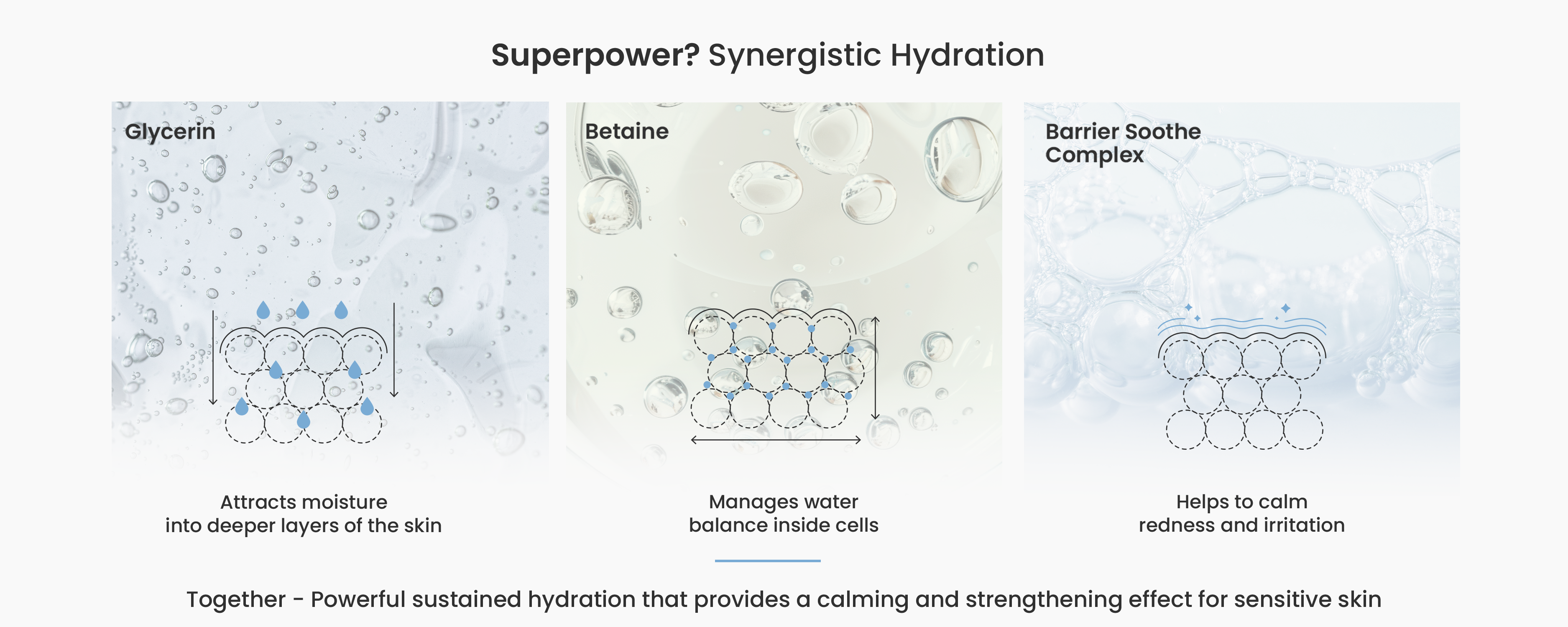 - Restores skin hydration balance at cellular level