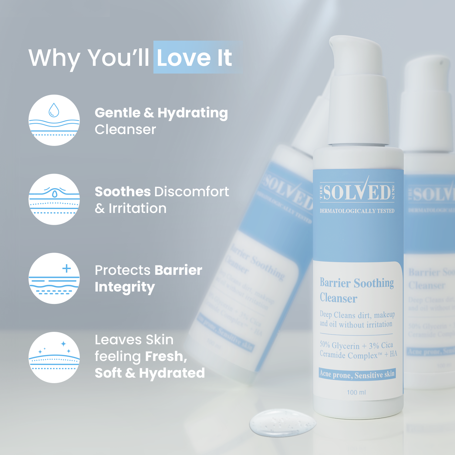 Barrier Soothing Cleanser is for those who want more. More comfort. More care. More freshness without the fear of flare-ups.