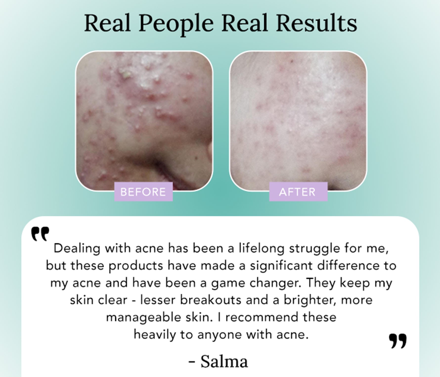 Used as a combination, you’ll see a rapid reduction in active acne, and you’ll start seeing lesser breakouts happening after 6 weeks. Facewash targets all parts of the acne cycle within the skin, and the moisturizer will hydrate the skin, repair it, and reduce the skin sensitivity over time.