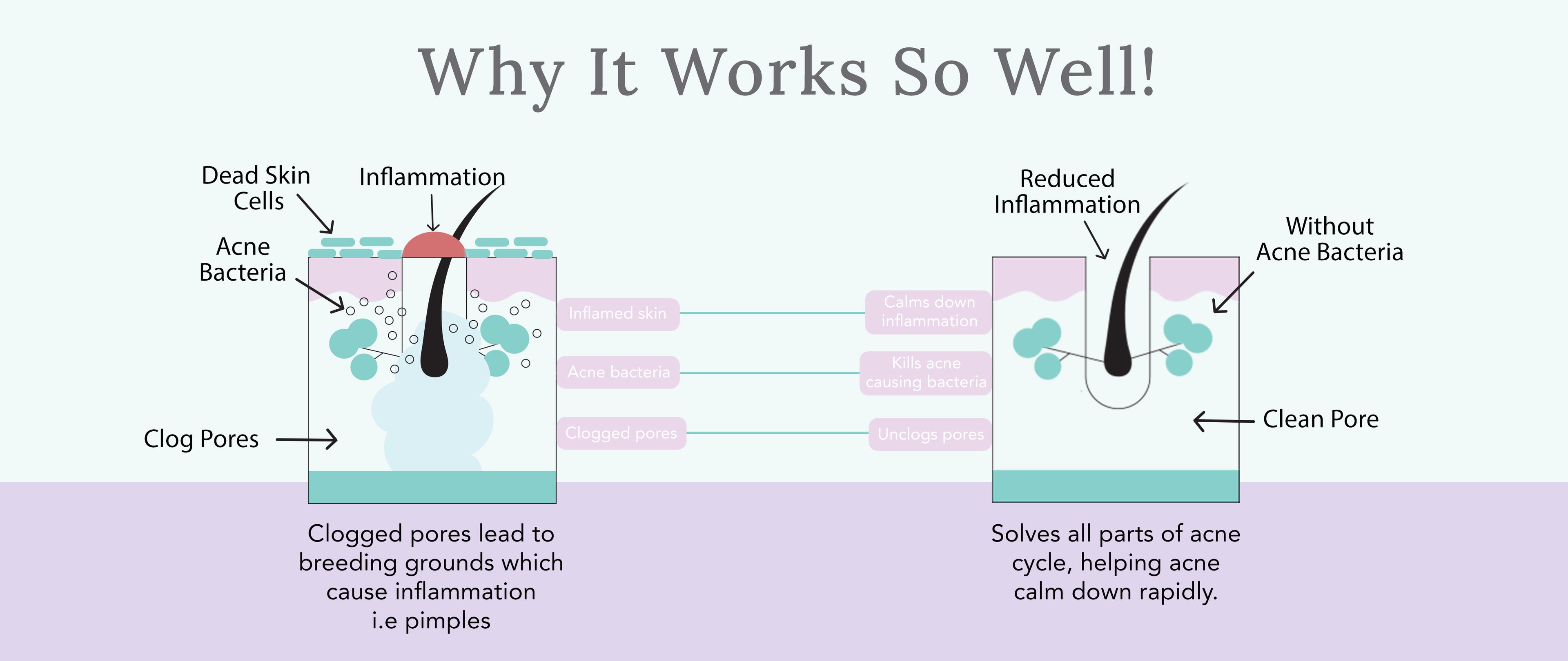 The Facewash helps clear active acne, and moisturizer helps the skin to heal and strengthen, so it can protect itself against future breakouts.