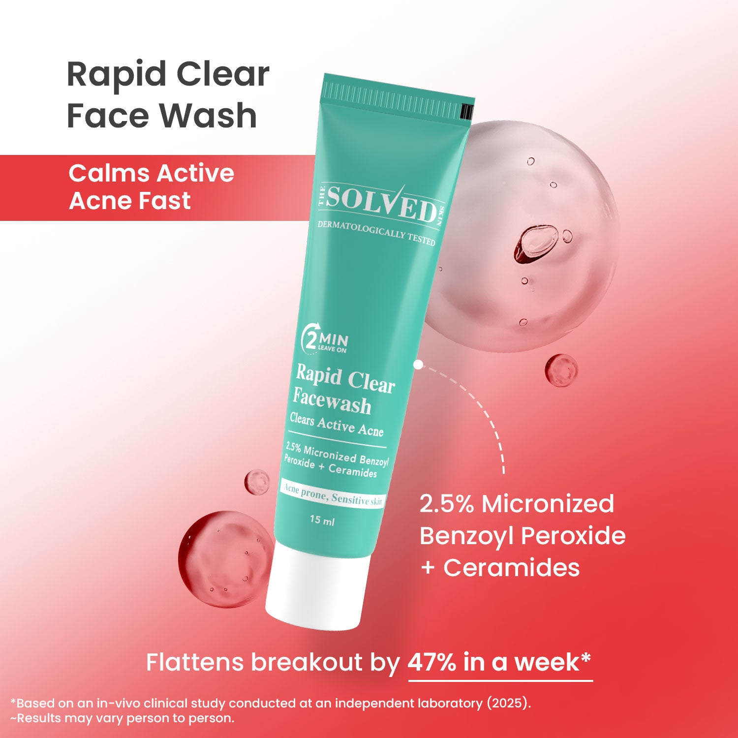 - Rapid Clear Facewash (15ml) - Clinically proven to flatten acne by 47% in 1 week*