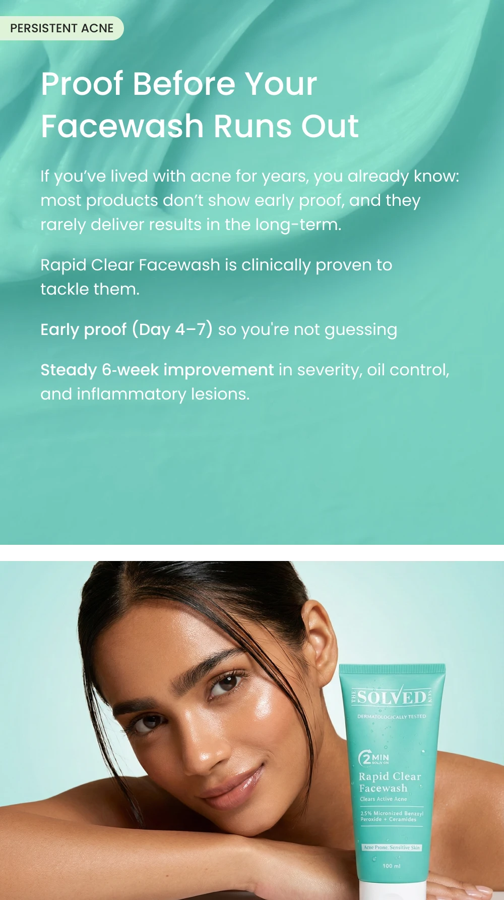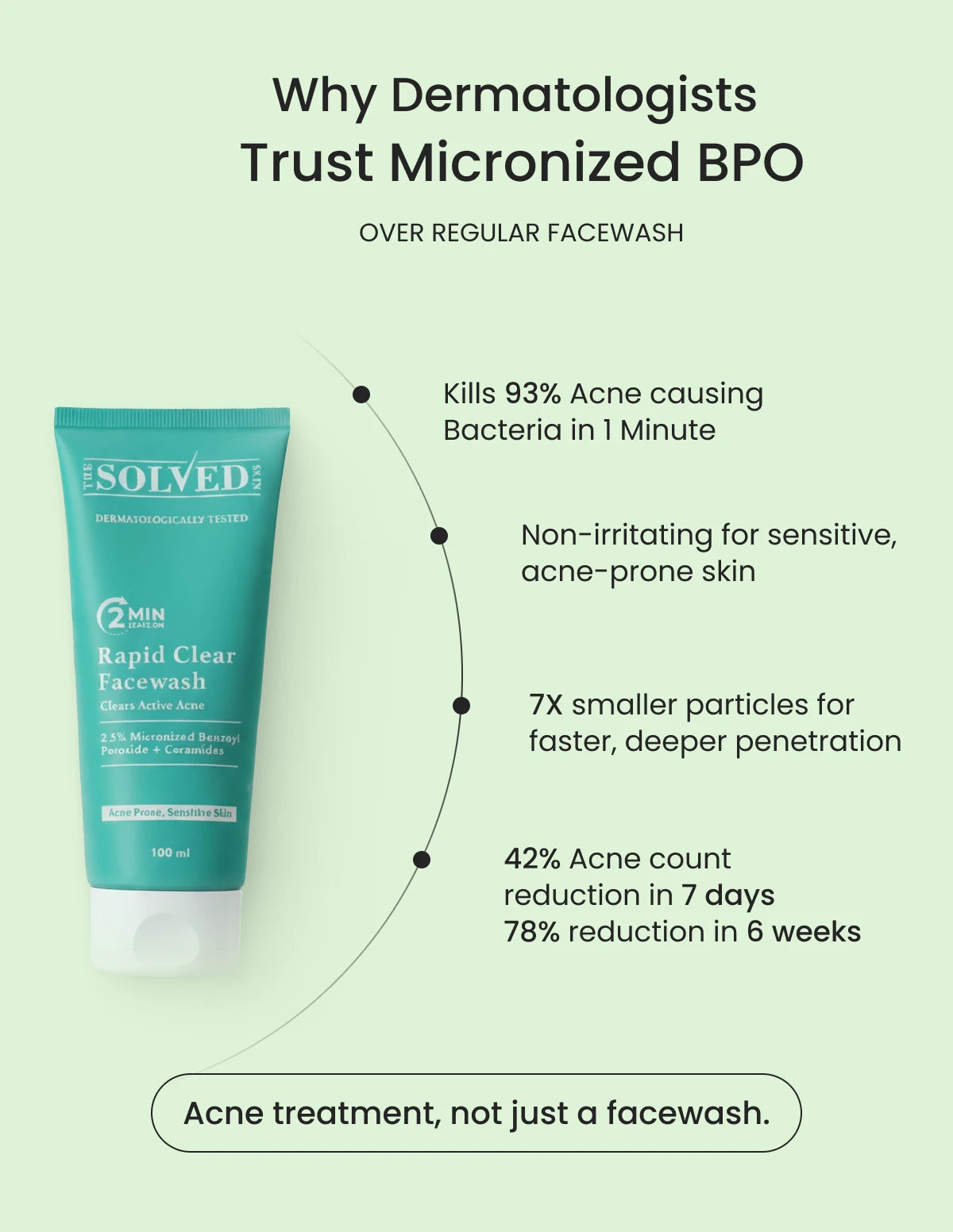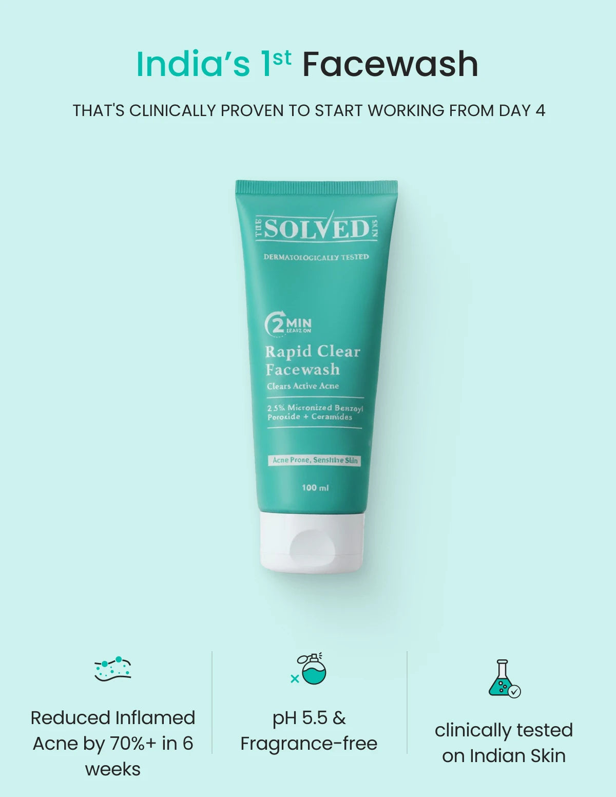 Get Rapid relief in your acne with India's 1st facewash with patented Micronized Benzoyl Peroxide (BPO).