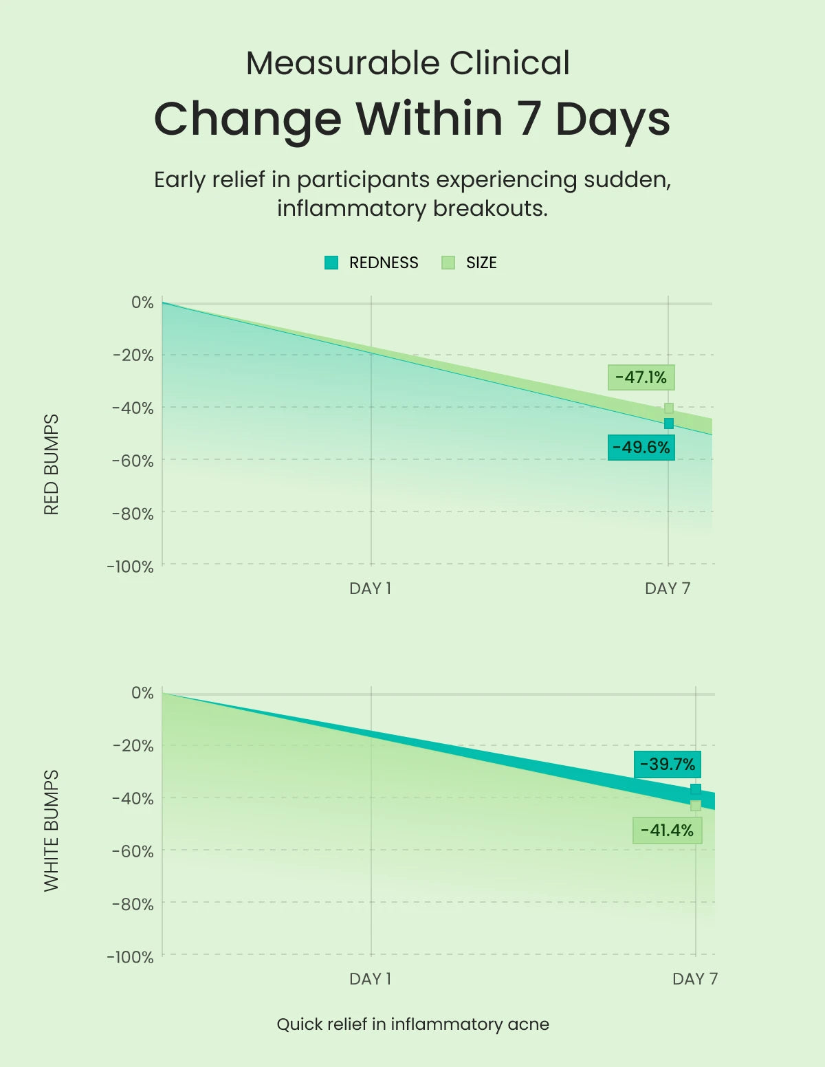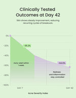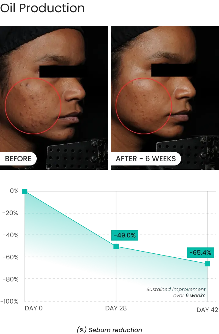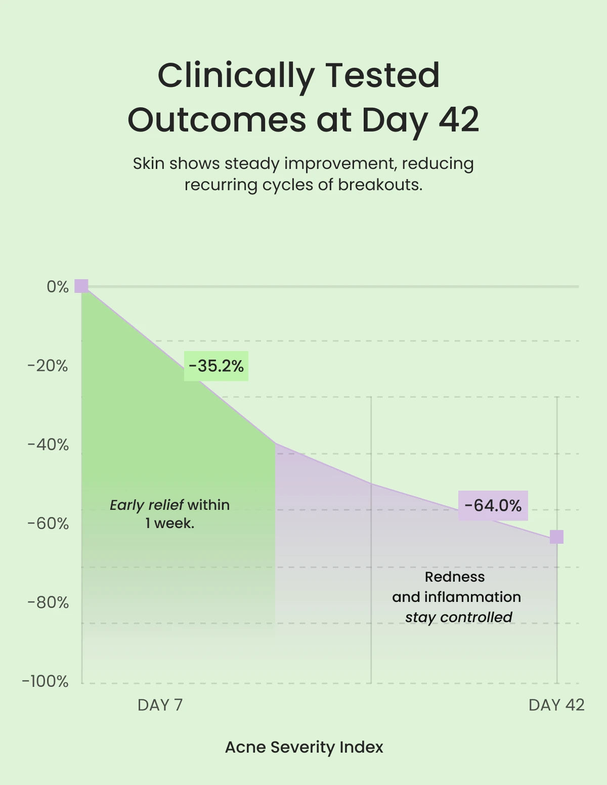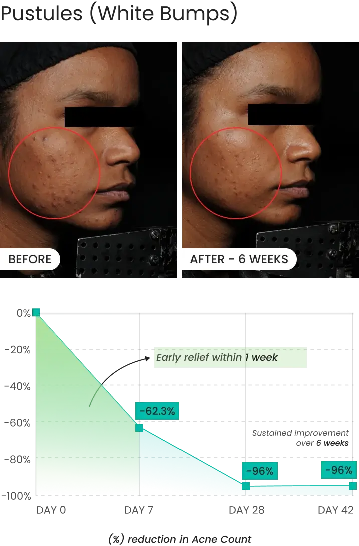 - Up to 64% reduction in overall acne severity by Week 6.