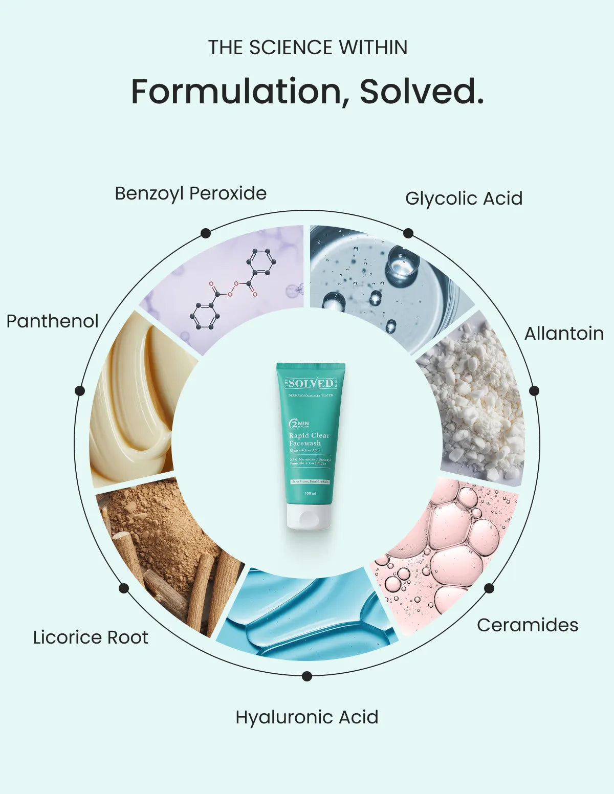 Get Rapid relief in your acne with India's 1st facewash with patented Micronized Benzoyl Peroxide (BPO).