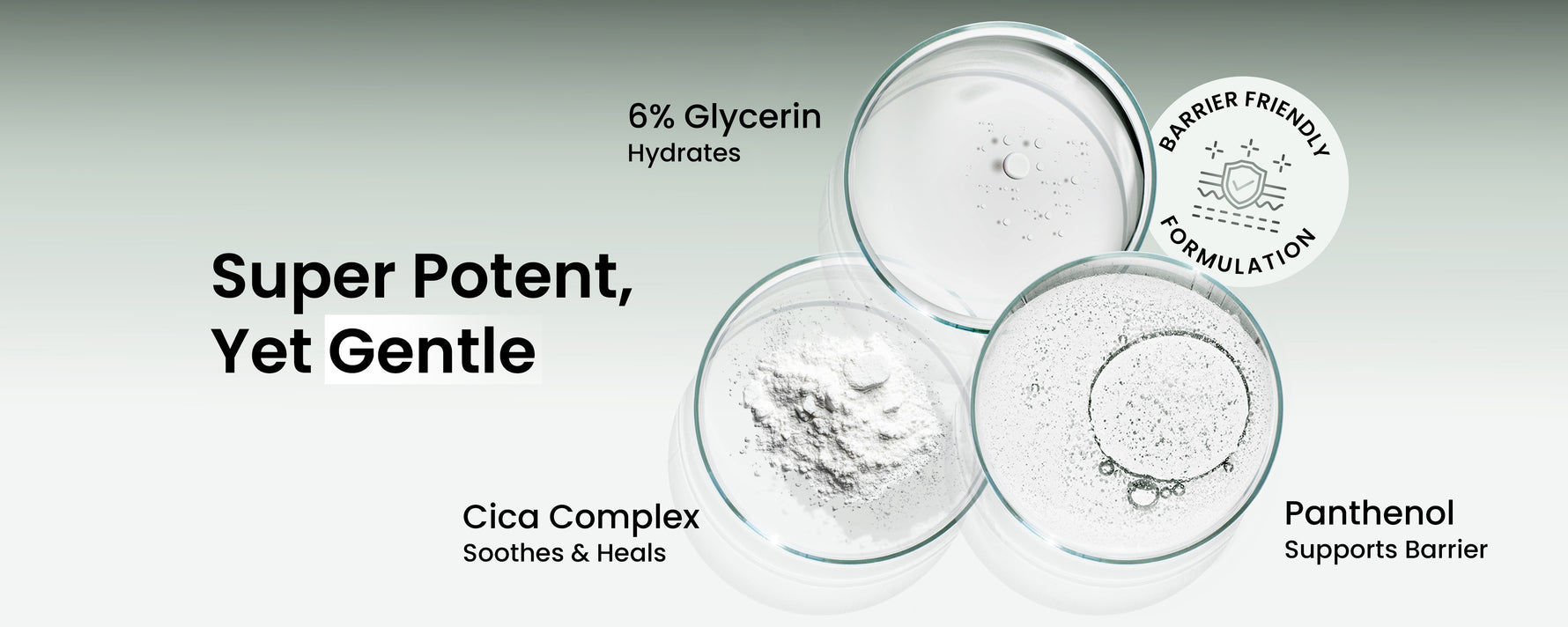 Aqua, Sodium Lauroyl Sarcosinate, Cocamidopropyl Hydroxysultaine, Glycerin, Cocamidopropyl Betaine, Sodium Methyl Cocoyl Taurate, Salicylic Acid , Sodium Lauroyl Lactylate, Ceteareth-60 Myristyl Glycol, Glycolic Acid, Phenoxyethanol & ethylhexylglycerin, Sodium Hydroxide, Panthenol, Glycyrrhiza Glabra (Licorice Root Extract), Disodium Ethylenediaminetetracetate, Sodium Hyaluronate Crosspolymer, Asiaticoside, Madecassic Acid, Asiatic Acid
